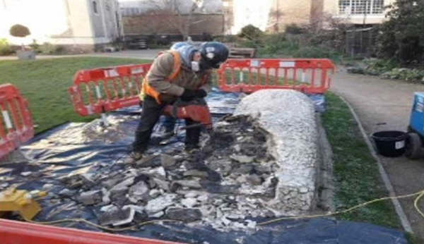 • Removing a ‘double hump’ sculpture and replacing it with a new RC slab that will be used as a bench seat.