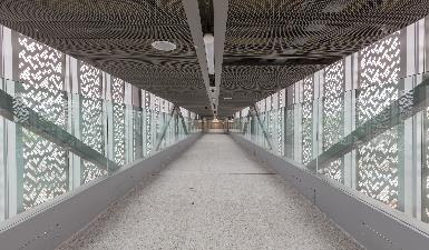 Design, fabrication and installation of a 27m, 40 tonne pedestrian/cycle bridge linking the station building and platforms over the main line (via lift and stair access) and all distinctive architectural cladding and glazing throughout.