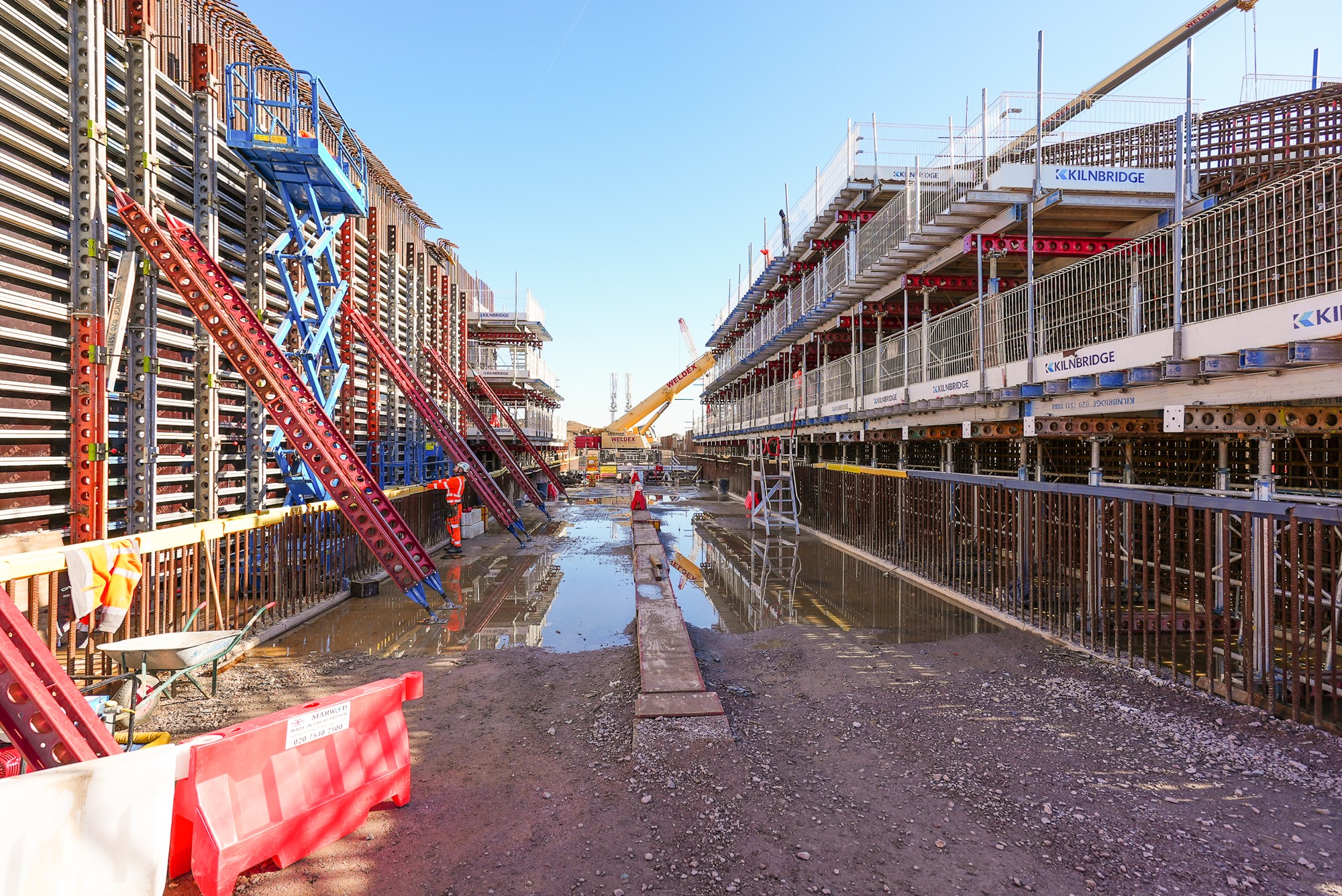 The project comprises the construction of a 1,000m long cut and cover tunnel constructed progressively from West to East. The Kilnbridge scope includes all of the formwork, reinforced concrete and waterproofing works, as well as the construction of over bridges, ventilation shafts and maintenance structures. The management and supply of cranage and lifting equipment is also part of the package.​