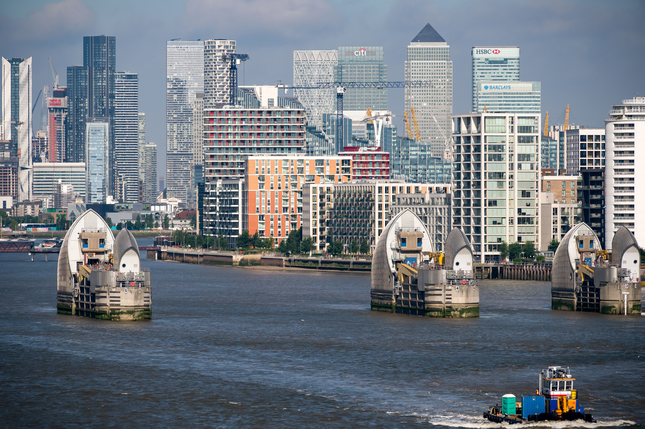 The Thames Barrier is one of the largest movable flood barriers in the world. It is an operational facility managed by the Environmental Agency (EA), and consists of a purpose-built structure spanning the River Thames with ancillary buildings on the north and south shores. There are two up and down river service / access tunnels (each approximately 520 m long) running under the river linking the shores.