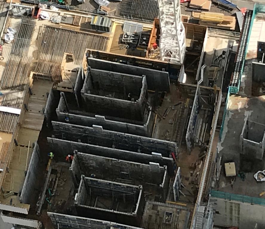 Kilnbridge were contracted for the construction of the D1 and D2 14-storey high cores. The scope included the construction of horizontal elements in the structural core including lift lobby, motor room, roof slabs, floating slabs, kerbs, upstands, plant bases, plinths and drainage. Kilnbridge were also contracted for the supply and installation of all precast concrete staircases within the core including internal handrails from the ground to level 14.